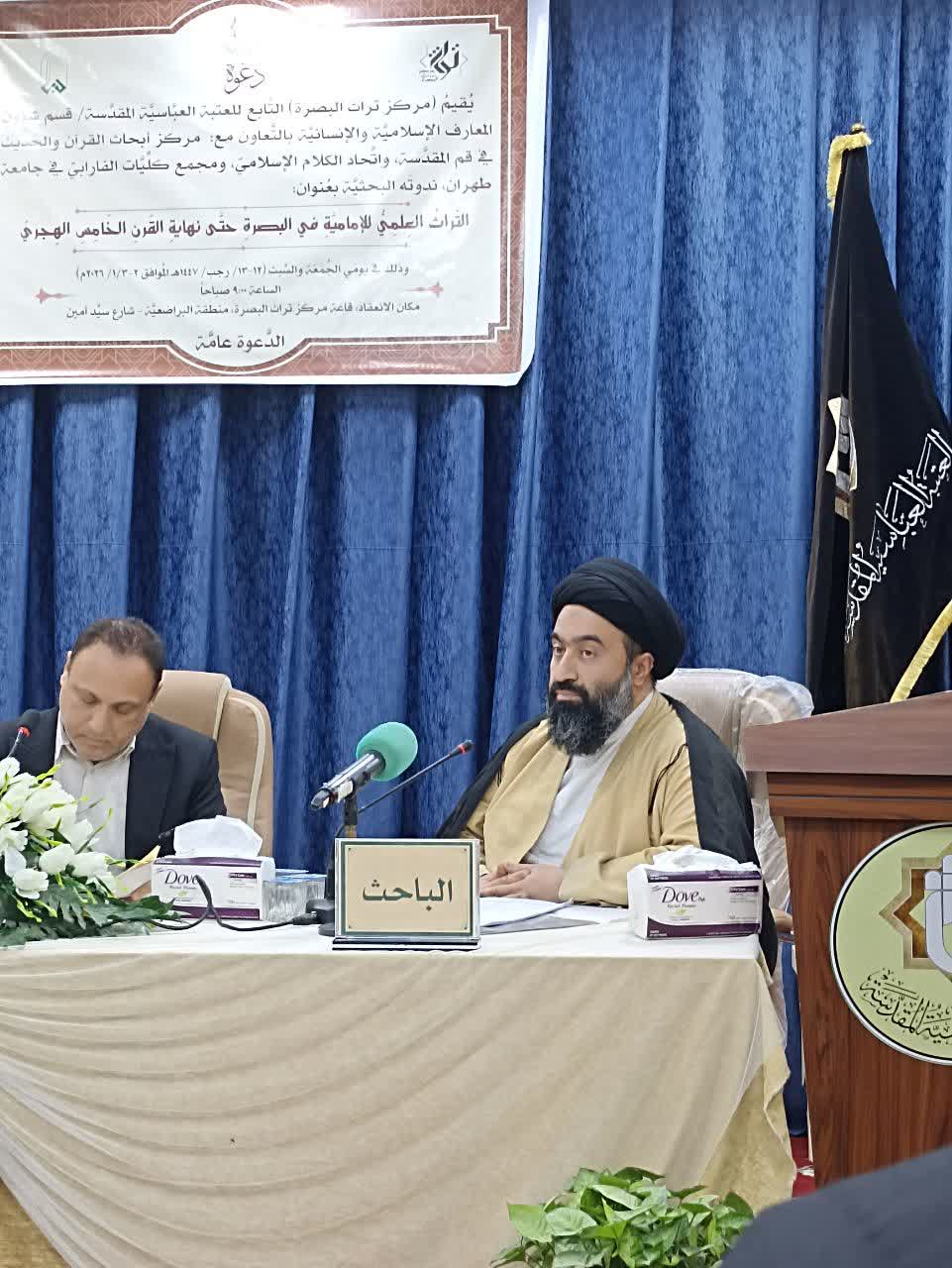 به گزارش روابط عمومی پژوهشگاه قرآن و حدیث، سمینار علمی "تراث امامیه بصره تا پایان قرن پنجم" با مشارکت و همکاری پژوهشگاه قرآن و حدیث و مرکز تراث بصره وابسته به عتبه عباسیّه در روزهای ۱۲ و ۱۳ دی‌ماه در شهر بصره عراق برگزار شد. در این رویداد علمی پژوهشگرانی از ایران و از پژوهشگاه قرآن و حدیث و  پژوهشگرانی از عراق حضور داشتند که به بیان دیدگاه و مقالاتی که در حوزه میراث علمی و فرهنگی شیعیان بصره تا پایان قرن پنجم هجری، ارائه دادند پرداختند.