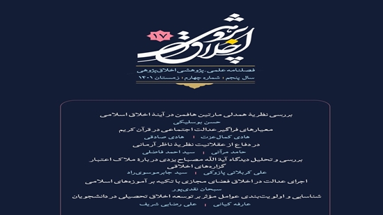 هفدهمین شماره از فصلنامه علمی ـ پژوهشی "اخلاق پژوهی" با 6 مقاله ویژه زمستان 1401 منتشر شد.