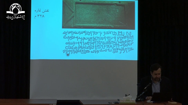 ایشان اظهار داشت: شاهد تاریخی دیگر، کتیبه‌های برجای‌مانده از تاریخِ عرب‌های پیشااسلامی است. این‌گونه کتیبه‌ها فراوان‌اند. در اینجا تنها به هفت سنگ‌نوشته می‌پردازیم که عبارتند از: نقش أم الجمال، نقش نمارة، نقش معبد رم، نقش دوم أم الجمال، نقد زبد، نقس أسیس، و نقش حران جنوبی.