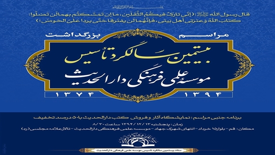 مراسم بزرگداشت بیستمین سالگرد تأسیس مؤسسه علمی فرهنگی دارالحدیث برگزار می شود