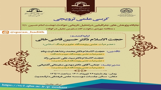 کرسی علمی ترویجی وبیناری پژوهشگاه قرآن و حدیث با همکاری دبیرخانه هیات حمایت از کرسی های نظریه پردازی، نقد و مناظره برگزار می شود.