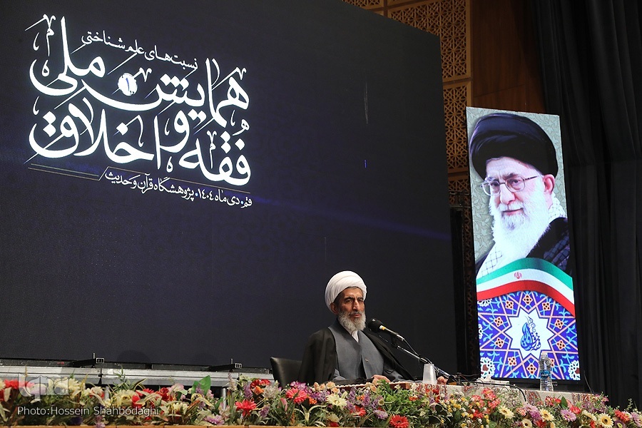 به گزارش روابط عمومی پژوهشگاه قرآن و حدیث، مراسم روز پایانی و اصلی همایش ملی «فقه و اخلاق» با قرائت قرآن و سرود ملی جمهوری اسلامی ایران آغاز گردید.گزارش دبیر اجرایی: ترسیم نقشه راه یک فرآیند علمی منسجمسخنران نخست، حجت‌الاسلام دکتر سیدمحمدباقر میرصانع، دبیر اجرایی همایش، با ارائه گزارش تصویری روشن از پشت صحنه علمی و اجرایی این رویداد ترسیم نمودند. ایشان با اشاره به هدف اصلی همایش یعنی «تبیین نسبت‌های علم‌شناختی فقه و اخلاق»، این رویداد را حاصل یک «فرآیند علمی منسجم و چندمرحله‌ای» دانستند که ظرفیت‌های حوزه و دانشگاه را یکجا گرد آورده است. گزارش ایشان شامل تشریح کامل مراحل زیر بود:– فراخوان و داوری مقالات: با استقبال پژوهشگران مواجه شد و پس از داوری دقیق، ۴۰ مقاله برگزیده شد که بخشی در مجلات «اخلاق‌پژوهی» و «حیات معنوی» چاپ شد.– پیش‌نشست‌های تخصصی: برگزاری ۱۱ نشست تخصصی با همکاری مراکز علمی مختلف که نقش کلیدی در پالایش مباحث و ارتقای سطح علمی همایش داشت. گزارش این نشست‌ها در قالب کتاب و در نشریات منتشر شده است.– همکاری گسترده نهادها: مشارکت بیش از ده نهاد علمی معتبر از جمله دانشگاه قرآن و حدیث، مؤسسه دائرةالمعارف فقه اسلامی، دانشگاه تهران، پژوهشگاه فرهنگ و اندیشه اسلامی و جامعه المصطفی، که نشان‌دهنده اجماع‌سازی علمی حول این موضوع است.– رسانه‌ای و اطلاع‌رسانی: همکاری با صداوسیما، رادیو معارف و نشریات برای انعکاس گسترده مباحث.دبیر اجرایی در پایان، از تمامی دست‌اندرکاران، حامیان علمی و به ویژه حجج اسلام آقایان قاضی عسکر و دکتر برنجکار و دکتر پسندیده تشکر کردند و امیدوار بودند این تلاش‌ها گامی در جهت احیای معالم دین باشد.