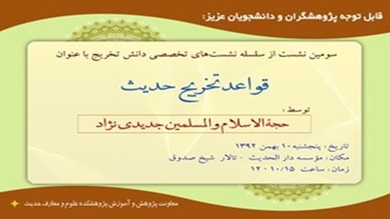 سومین نشست از سلسله نشستهای تخصصی دانش تخریج با عنوان «قواعد تخریج حدیث»