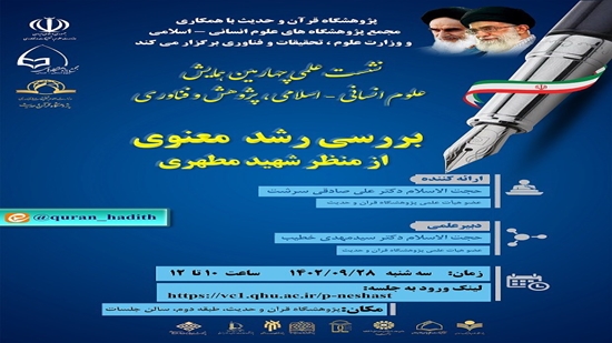 همزمان با هفته پژوهش، سیزدهمین نشست از سلسله نشست های علمی پژوهشگاه قرآن و حدیث با مشارکت و همکاری مجمع پژوهشگاه های علوم انسانی - اسلامی و وزارت علوم، تحقیقات و فناوری برگزار می شود.